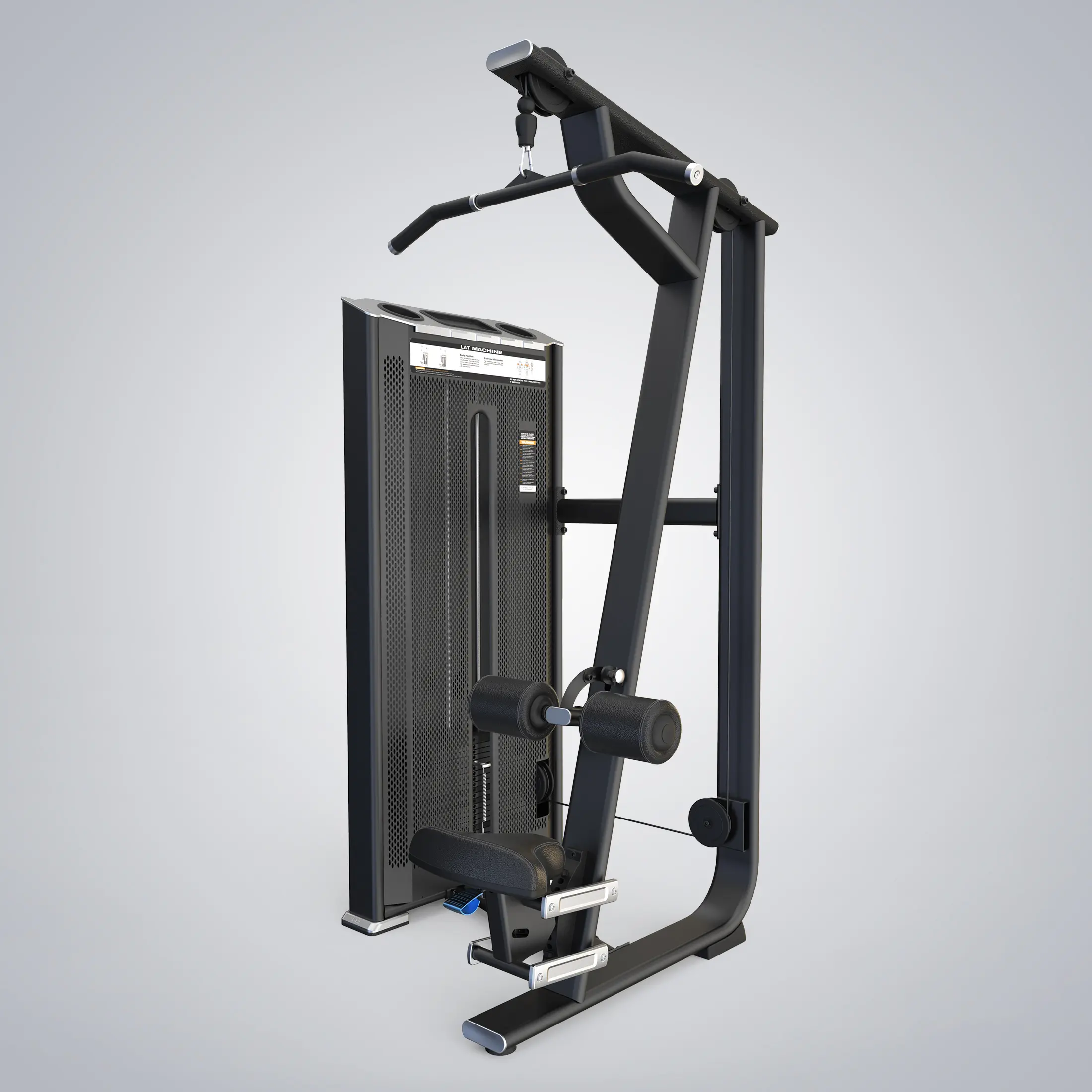 E7012A – The Prestige Pro Series Lat Pulldown follows the usual design style of this category, with the pulley position on the device allowing the user to move smoothly in front of the head. The Prestige Pro Series powered gas assist seat and adjustable thigh pads make it easier for exercisers to use and adjust.