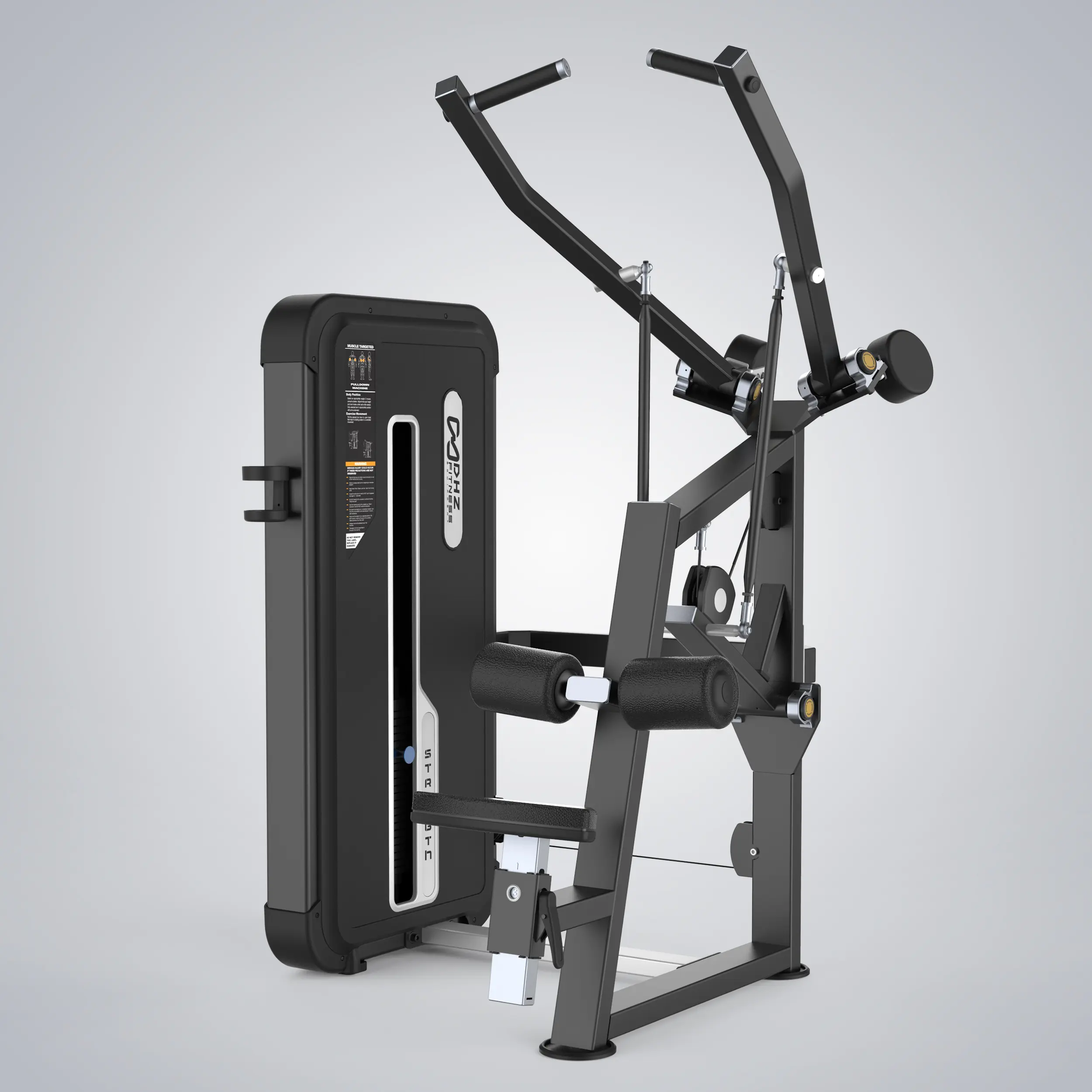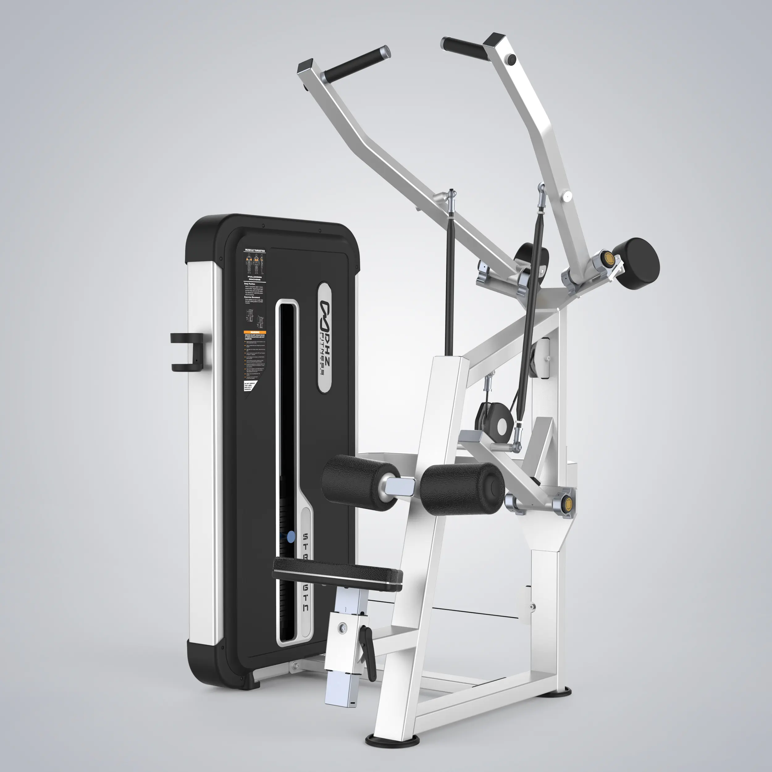 U3035A – The Apple Series Pulldown features a refined biomechanical design that provides a more natural and smoother path of motion. The angled seat and roller pads maximize comfort and stability for exercisers of all sizes while helping exercisers position themselves correctly.